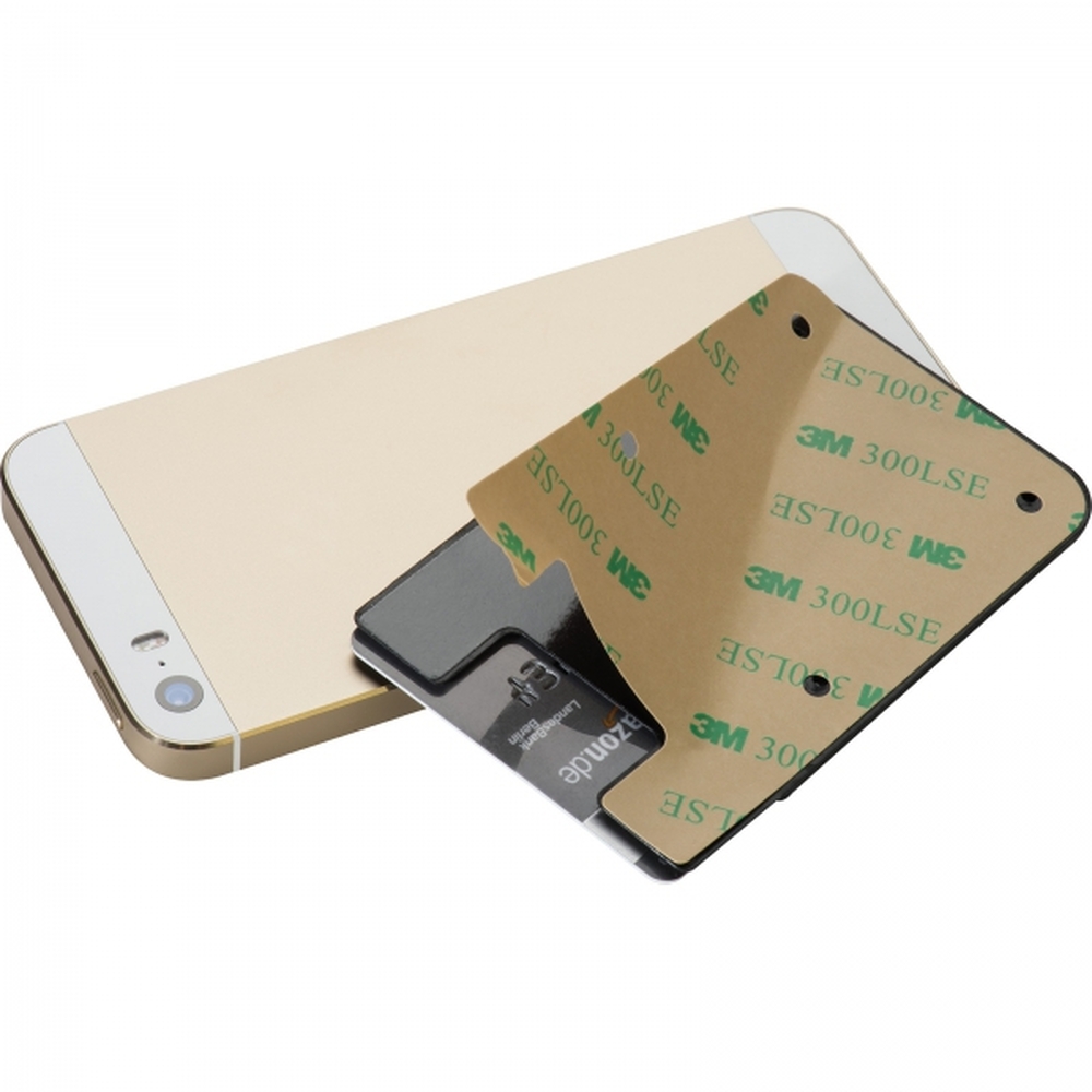 Samoprzylepne silikonowe etui na wizytówki i karty, przeznaczone do umieszczenia z tyłu smartfona. Nadruk tylko w kolorze białym, czarnym lub srebrnym.