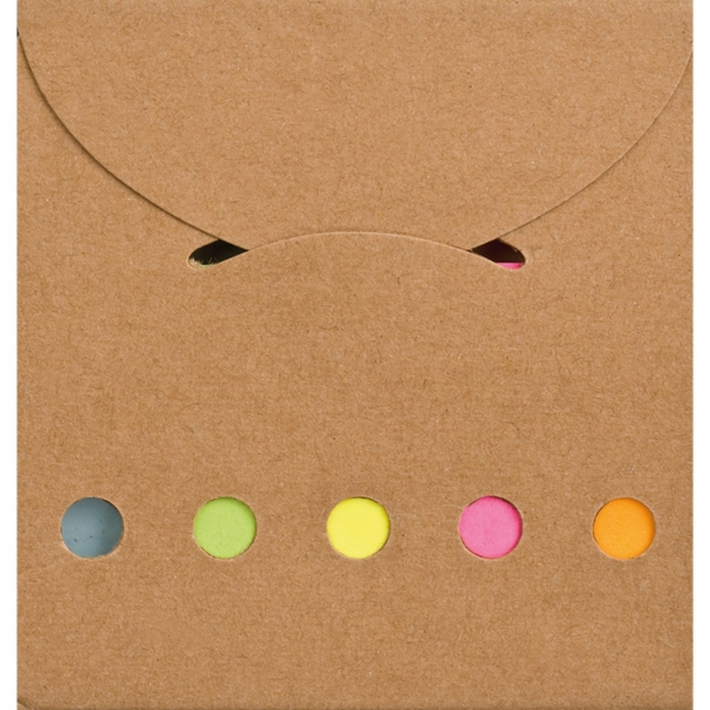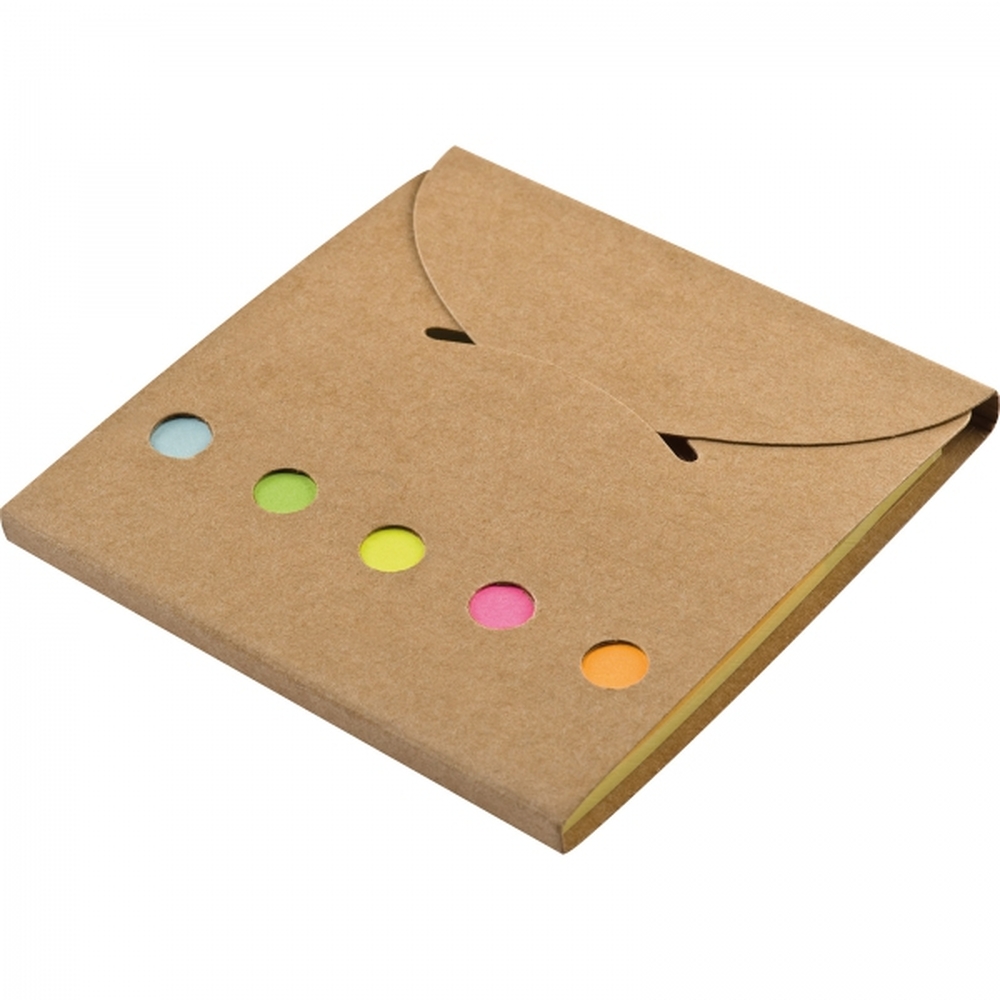 Karteczki samoprzylepne w kartonowym opakowaniu (25 sztuk większych żółtych i 5 kolorów po 25 sztuk karteczek mniejszych).
