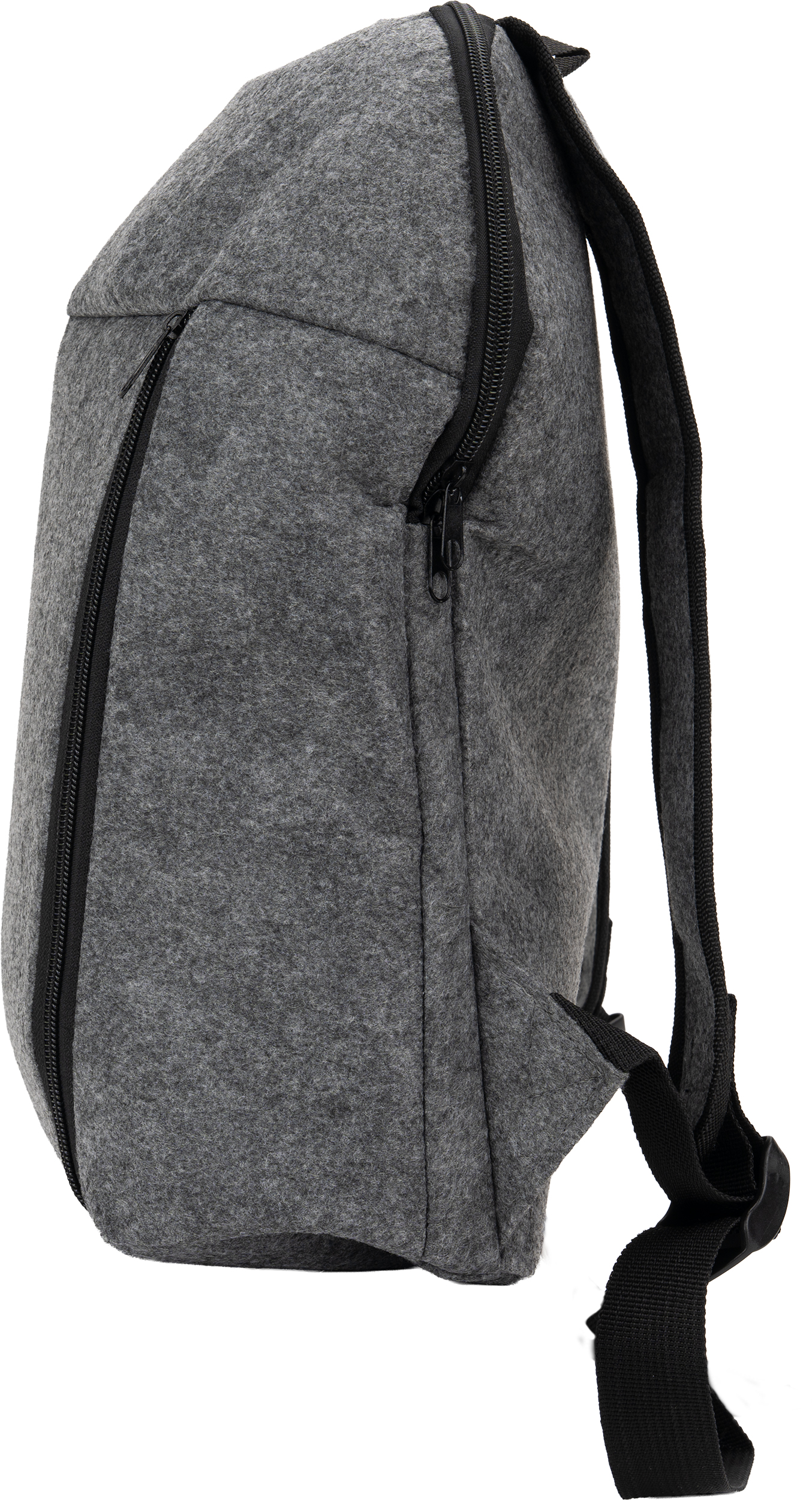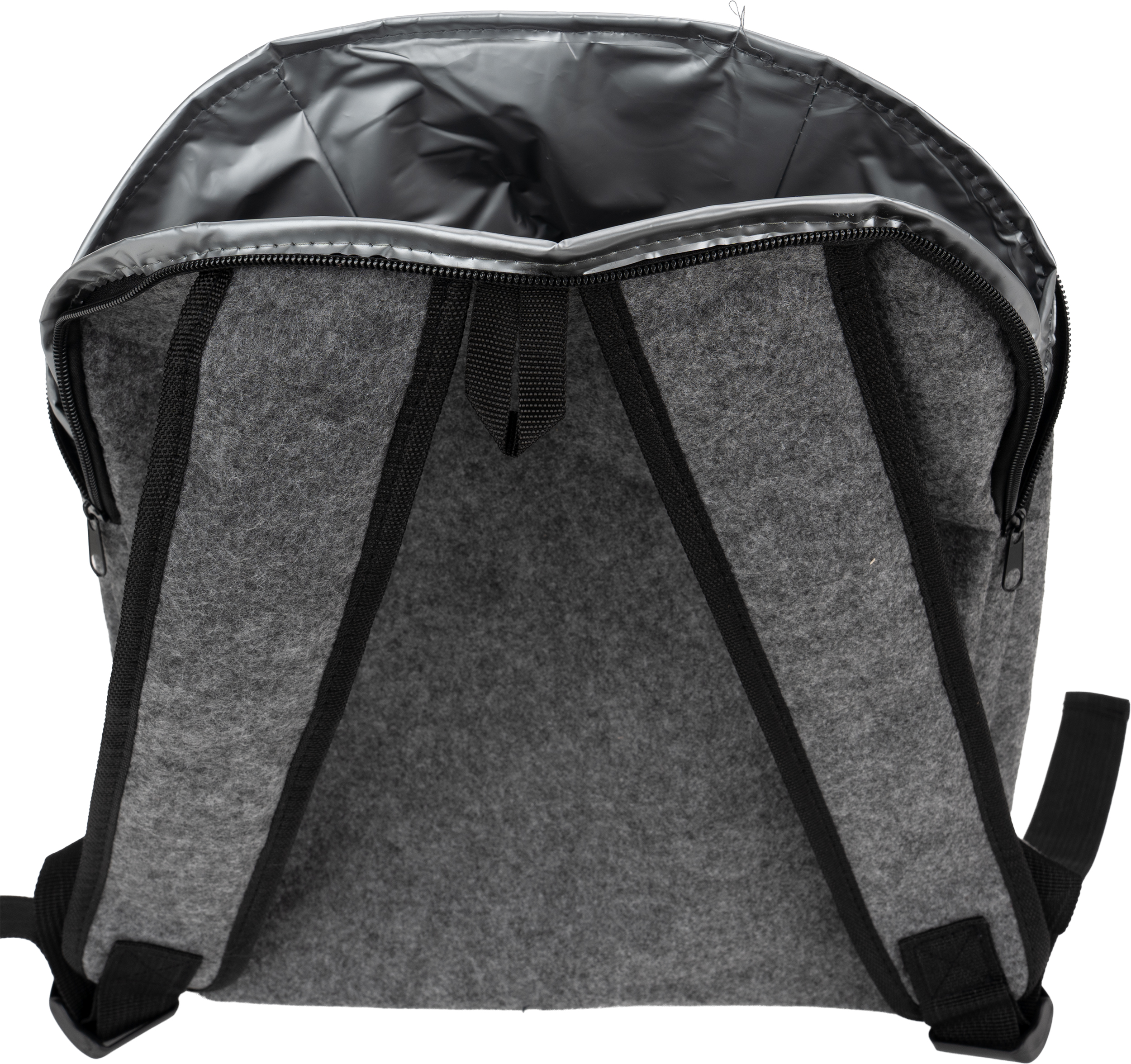 Plecak termiczny z filcu RPET, z główną komorą chłodzącą i małą kieszonką na zamek z przodu.