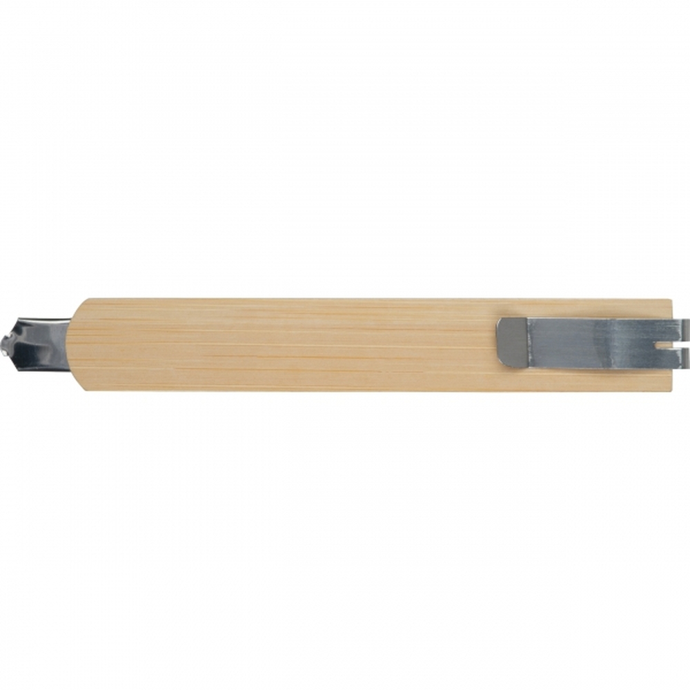 Nóż do kartonu z łamanym ostrzem, w bambusowej obudowie.
