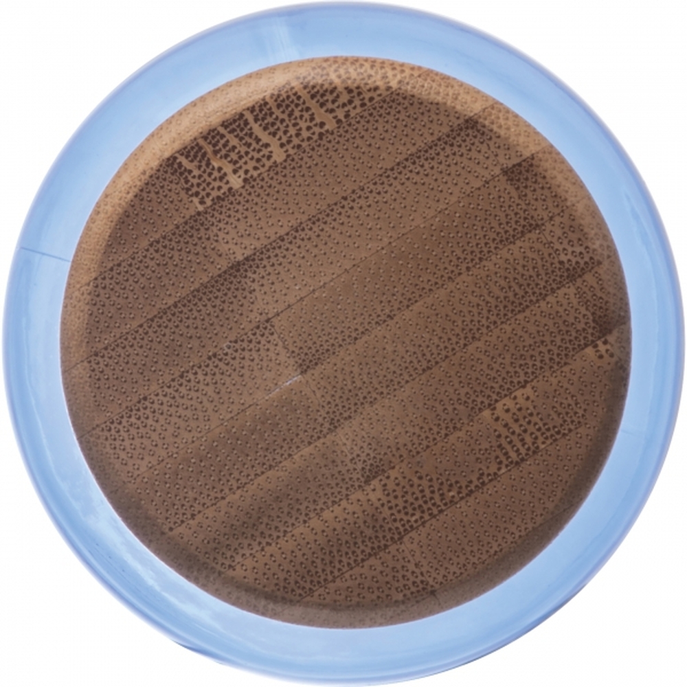 Butelka do picia wykonana z PET, z bambusowym wieczkiem, o pojemności 500 ml.
