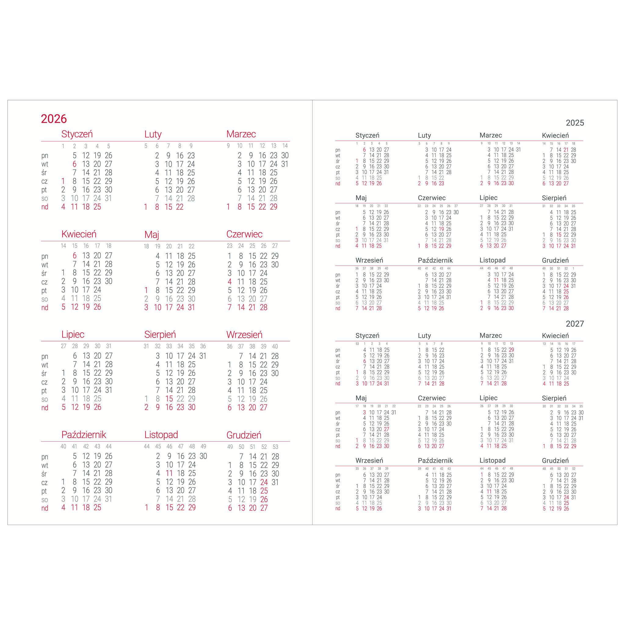 Terminarz w układzie tygodniowym, drukowany na papierze kremowym.