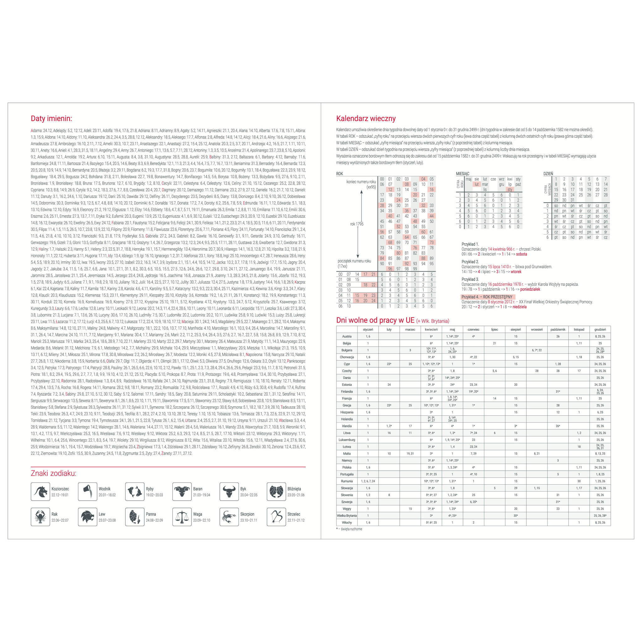 • plan roku • wschody i zachody Słońca, fazy Księżyca • kalendarium 2025,2026 i 2027 • plan urlopowy • wieczny kalendarz • dni wolne w UE + UK • informacje dla kierowców • wspólne oświadczenie o zdarzeniu drogowym • zasady pierwszej pomocy przedmedycznej • zasady selektywnej zbiórki odpadów • układ SI • alfabetyczny skorowidz teleadresowy • barwne mapy.