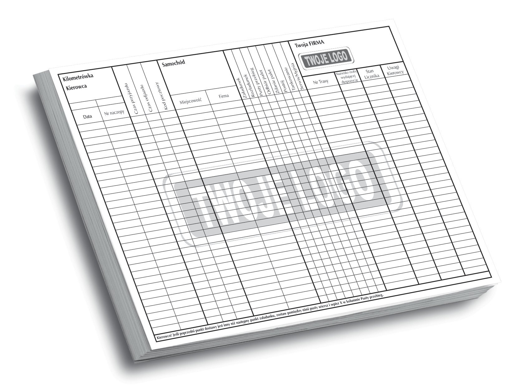 Druki samokopiujące dla firm transportowych, w formie klejonego bloczka.