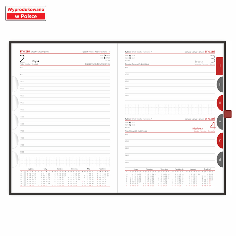 Układ: dzień na stronie, sobota i niedziela na jednej stronie