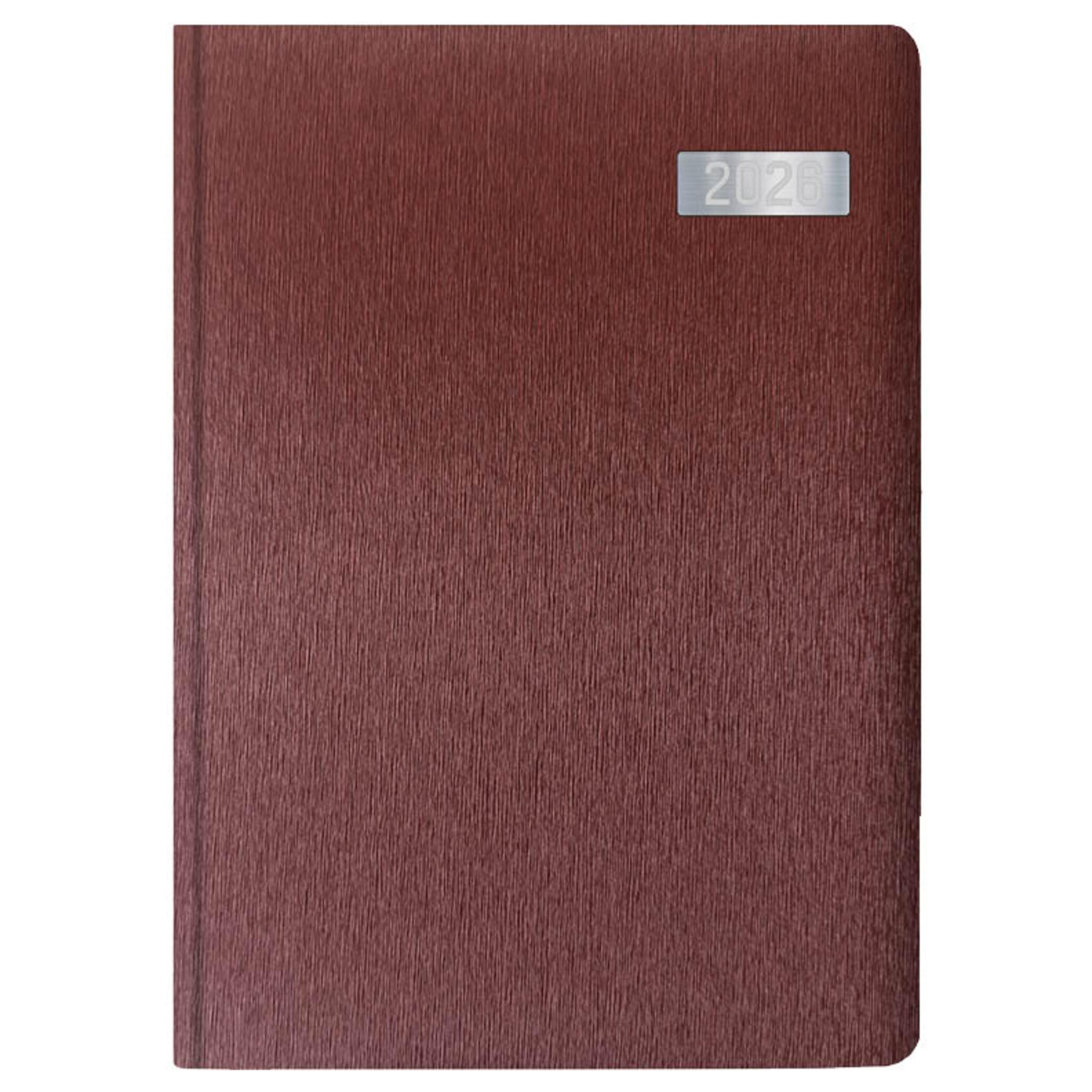 Terminarz w układzie tygodniowym, drukowany na białym papierze. Kolor druku szary. Blok terminarza szyty nićmi, z kapitałką i tasiemką w kolorze szarym oraz perforowanymi narożnikami. Narożniki terminarza zaokrąglone. Registry drukowane.
